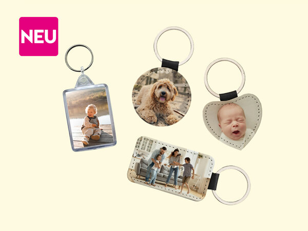 Gestalte deinen persönlichen Schlüsselanhänger aus Kunstleder, Plexiglas oder Holz – dein Lieblingsfoto immer stylisch zum Mitnehmen.