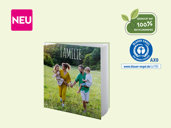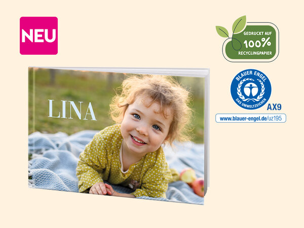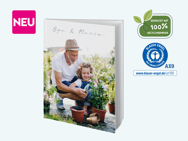 Dank des verstärkten, matten Hardcover-Einbands mit Recyclingpapier sind Ihre Erinnerungen am Fotobuch Naturgebunden jetzt noch besser geschützt.